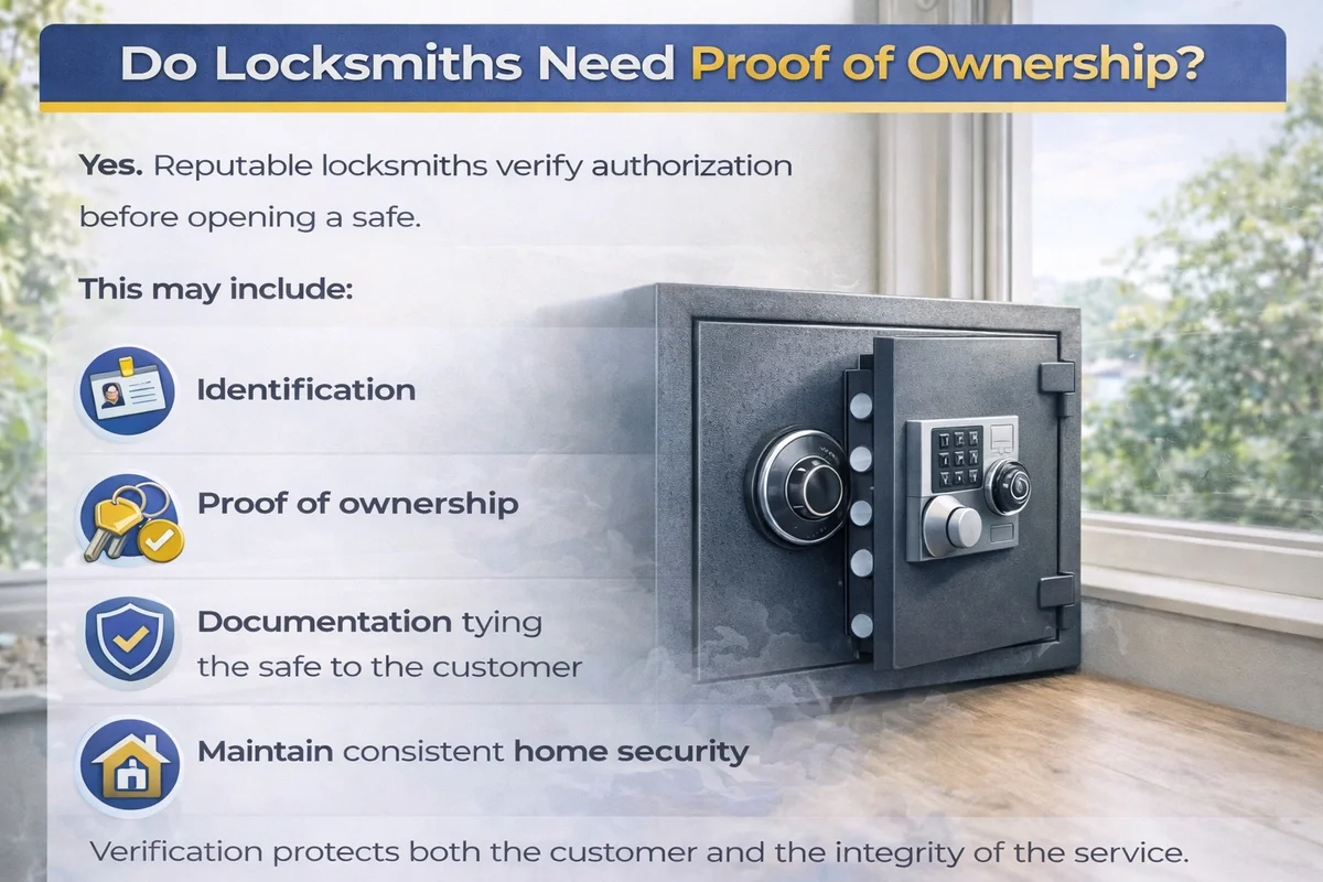 Yes. Reputable locksmiths verify authorization before opening a safe.