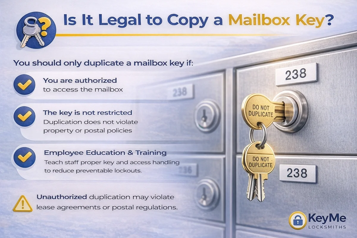 “The key question is who owns the mailbox, if it’s USPS-controlled, duplication policies may be different.” - KeyMe Locksmiths