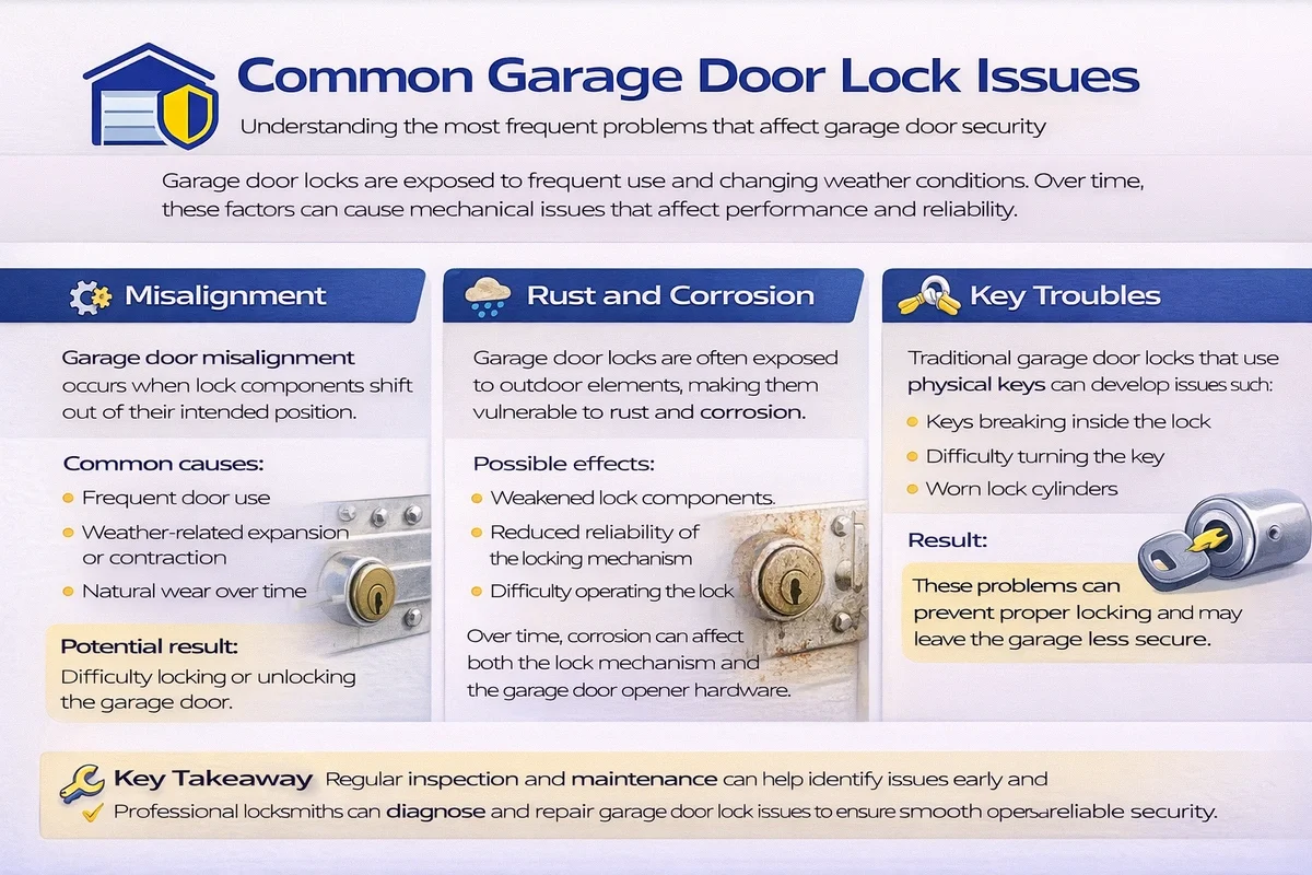 From minor misalignments to more complex electronic malfunctions, understanding the common problems and implementing DIY fixes when possible can save both time and money. However, for intricate issues or situations demanding a professional touch, entrusting the repair to a reputable locksmith to ensure the continued safety of your home and belongings. Regular maintenance and periodic checks can go a long way in preventing lock issues and keeping your garage door in top-notch condition.