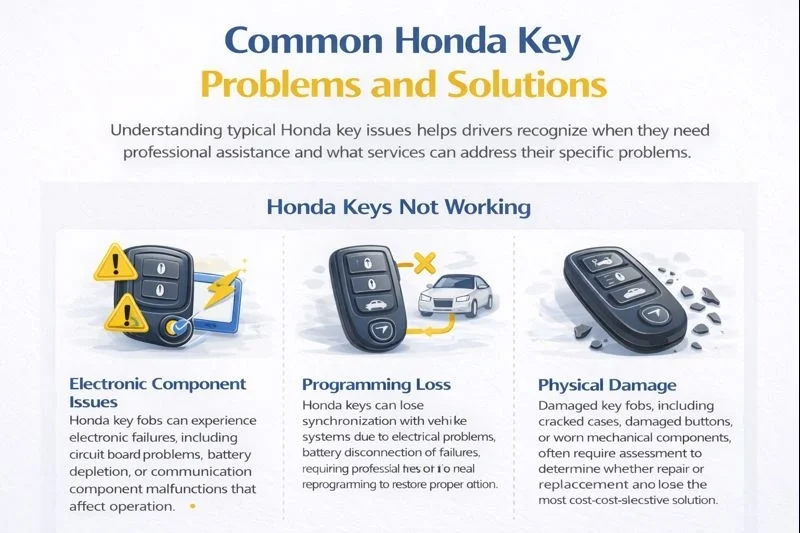 Understanding typical Honda key issues helps drivers recognize when they need professional assistance and what services can address their specific problems.