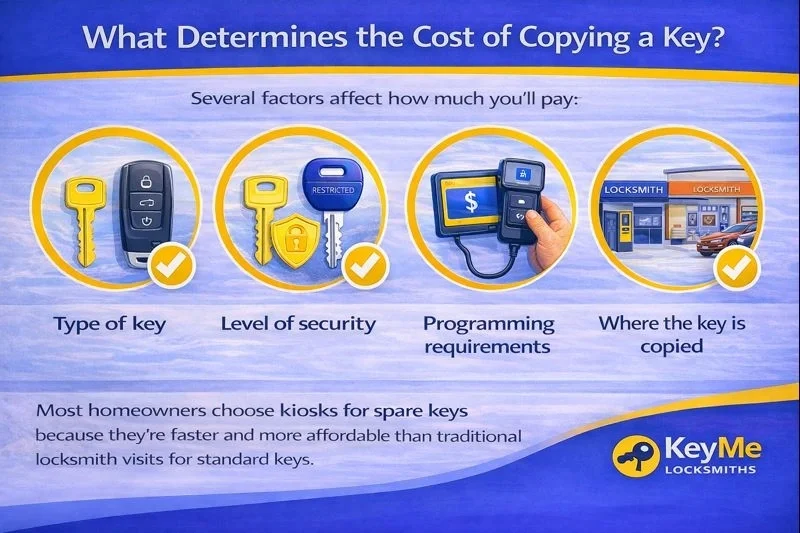 “For most household keys, kiosks are the most affordable option. Locksmiths add value when security or programming is involved.” - KeyMe Locksmiths