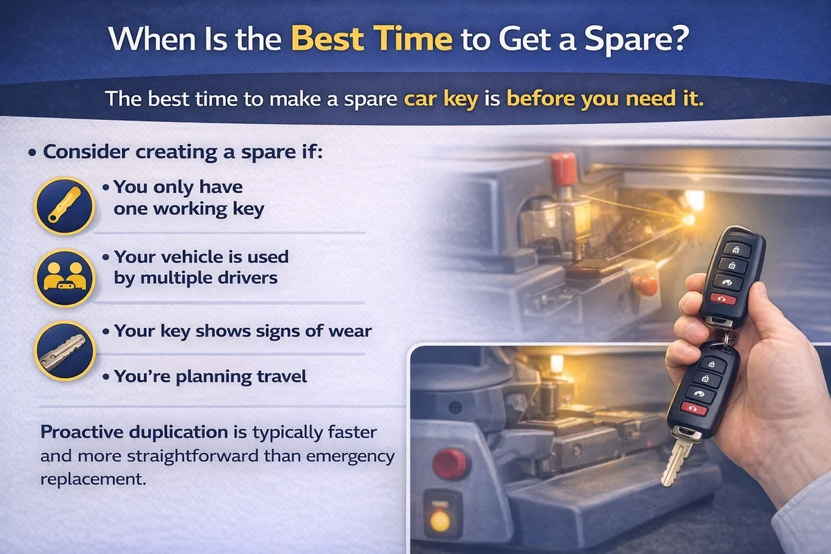 Creating a spare while you still have a functioning key can prevent more involved replacement procedures later.