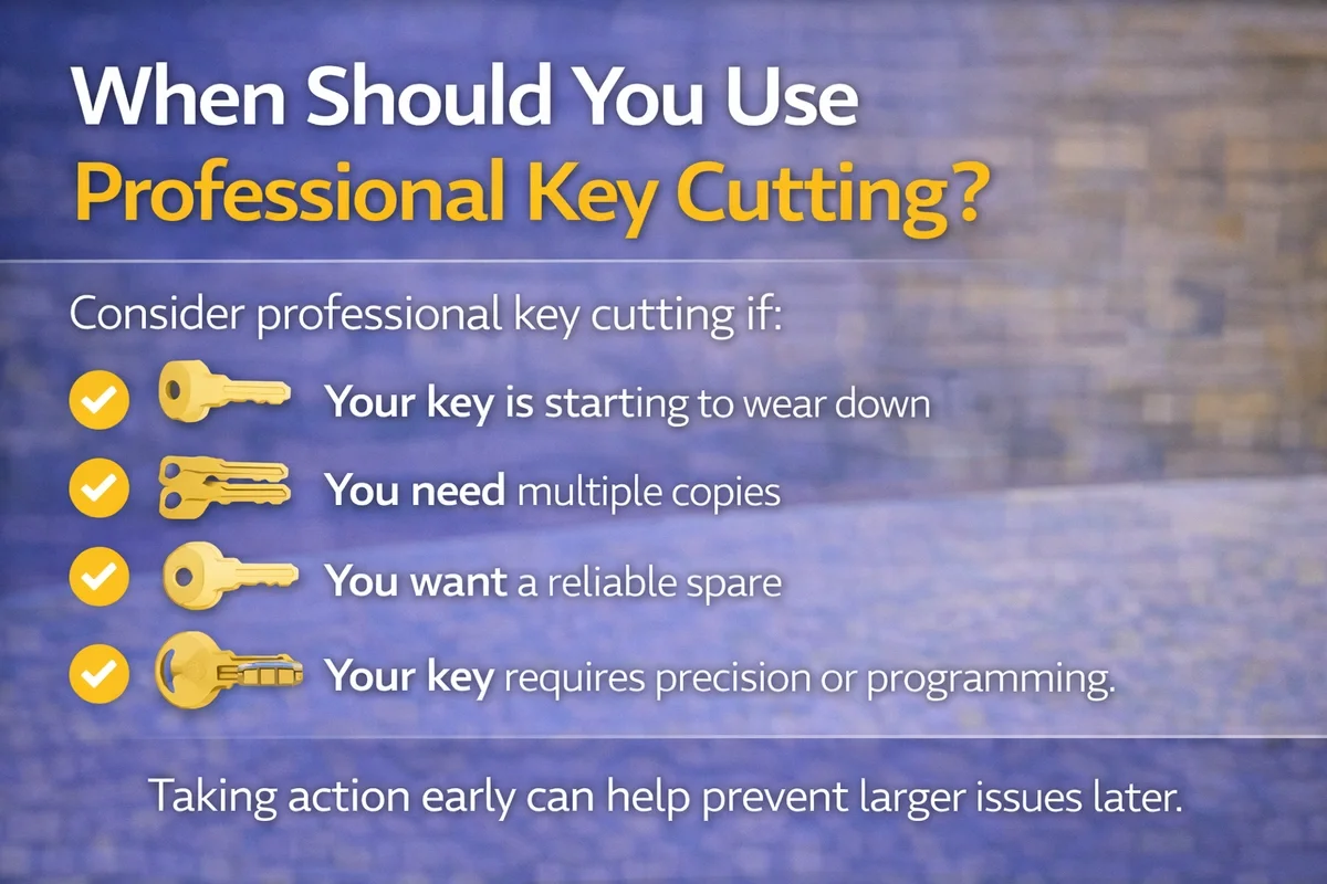 Professional key cutting helps ensure your key performs reliably from the start.