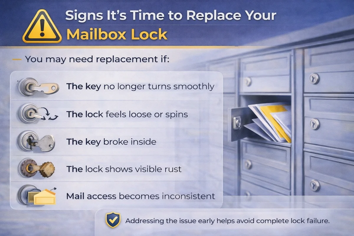 Mailbox locks typically fail due to weather exposure, corrosion, worn internal components, or damaged keys. Because mailbox locks are used frequently and exposed to outdoor conditions, they often wear out faster than interior locks. When failure happens, proper replacement depends on who owns the mailbox and what type of lock is installed.